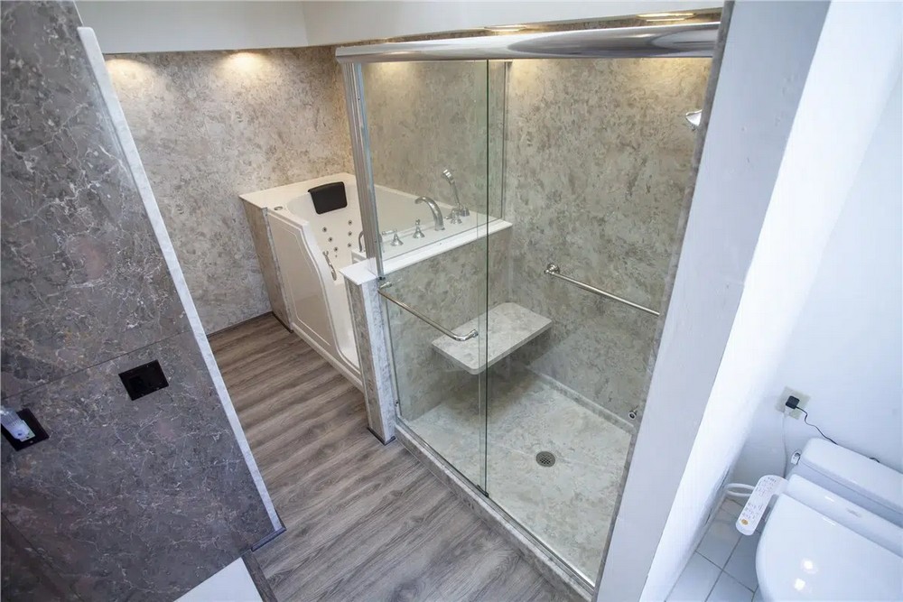 Replacing a traditional bathtub with a modern shower can help open up the room and create a more functional layout.